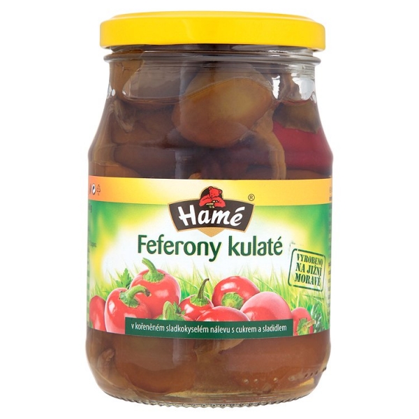 Hamé Sterilizované feferóny guľaté v korenenom sladkokyslom náleve s cukrom a sladidlami 320 g