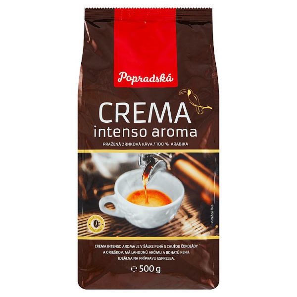Zmes výberových odrôd kávy arabika. Crema Intenso Aroma je pražená tradičným spôsobom, teda pri vysokej teplote v pražiacom bubne. Tento klasický spôsob praženia dáva priestor vyniknúť charakteru kávových zŕn.