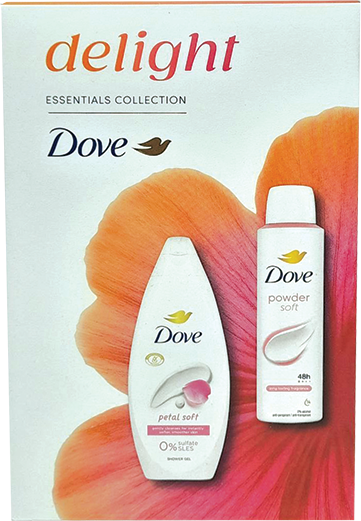 Hľadáte ten pravý darček pre Vašu blízku osobu? Stavte na istotu. Pripravili sme pre vás darček plný jemnosti a starostlivosti o pokožku. Presne to je darčeková sada Dove, ktorá obsahuje obľúbený sprchovací gél a antiperspirant sprej. Dove sprchovací gél Petal Soft s jemnou kvetinovou vôňou jemne čistí pre okamžite jemnejšiu a hladšiu pokožku. Tajomstvom receptúry sprchovacích gélov Dove je obsah hydratačných zložiek, ktoré sa prirodzene vyskytujú v pokožke a rýchlo sa vstrebávajú. Zároveň obsahujú jemné bezsulfátové čistiace zložky, zloženie je teda vhodné aj na citlivejšiu pokožku. Už po prvej sprche bude pokožka vláčnejšia a lepšie hydratovaná. Antiperspirant v spreji Dove Powder Soft obsahuje ¼ hydratačného krému a 100% prírodný ošetrujúci olej, ktoré zanechajú pokožku v podpazuší jemnú a hladkú na dotyk. Tento antiperspirant v spreji ponúka navyše 48-hodinovú ochranu pred potom a zápachom.