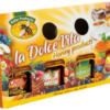 Poleva kakaová 20% (cukor, tuk rastlinný palmový a maslovníkový, kakao odtučnené 17%, srvátka sušená, emulgátor: E442 a E476, aróma)