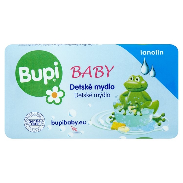 Mydlo s lanolínom, ktorý má zvláčňujúci a hydratačný účinok na jemnú a citlivú detskú pokožku.