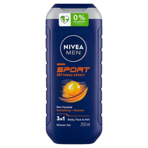 Sprchovací gél 3 v 1 na telo, tvár a vlasy s osviežujúcim zložením a mužnou vôňou. 99% zloženia je biologicky rozložiteľných (na základe OECD alebo ekvivalentných metód).