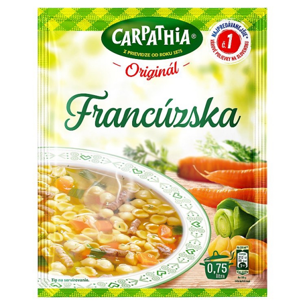 Francúzsku polievku vymyslela v roku 1971 pani Darina Matyášová, ktorá vtedy pracovala v prievidzskej CARPATHII na vývoji polievok. Pani Darina Matyášová pracovala celý život iba v CARPATHII, nakoniec aj ako jej generálna riaditeľka. Francúzska polievka sa vďaka svojej nezameniteľnej chuti a vôni stala hneď po uvedení na trh obrovským hitom a vyrástli na nej celé generácie.